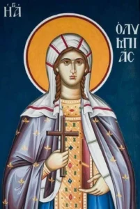 Στὸ πολυπληθὲς στερέωμα τῶν ἁγίων γυναικῶν τῆς Ἐκκλησίας μας ξεχωρίζει ἕνα λαμπρὸ ἄστρο, τὸ ὁποῖο φωτίζει στοὺς αἰῶνες καὶ φανερώνει τὴν γυναικεία ἀξία, τὴν ὁποία ἀνήγαγε στὴ σωστή της διάσταση μόνον ὁ Χριστιανισμὸς καὶ καταξίωσε ἡ ἁγία μας Ἐκκλησία. Πρόκειται γιὰ τὴν ἁγία Ὀλυμπιάδα, τὴν ἡρωικὴ καὶ ἀφοσιωμένη διακόνισσα, τῆς ὁποίας ἡ ζωὴ καὶ τὸ ἔργο εἶναι συνδεδεμένα μὲ τὸν μέγα ἱεράρχη τῆς Ἐκκλησίας μας τὸν ἱερὸ Χρυσόστομο καὶ καταδεικνύει τὸ μεγαλεῖο τῆς κοινωνικῆς διακονίας.