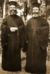 Ὀ Ἅγιος Φιλούμενος (δεξιὰ) μὲ τὸν δίδυμο ἀδελφό του π. Ἐλπίδιο.