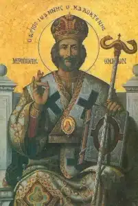 Τῆς Ἐκκλησίας τοῦ Θεοῦ σοφὲ τοὺς οἴακας, ἐπιστημόνως χειρισθεὶς ταύτην ἀκύμαντον, διεχήρησας μακάριε Ἰωάννη, τὰς ζαλώδεις καταιγίδας ἐκκρουσάμενος, καὶ βιαίας τρικυμίας τῶν αἱρέσεων· ὅθεν κράζω Σοι· Χαίροις, Πάτερ πανεύσπλαγχνε.